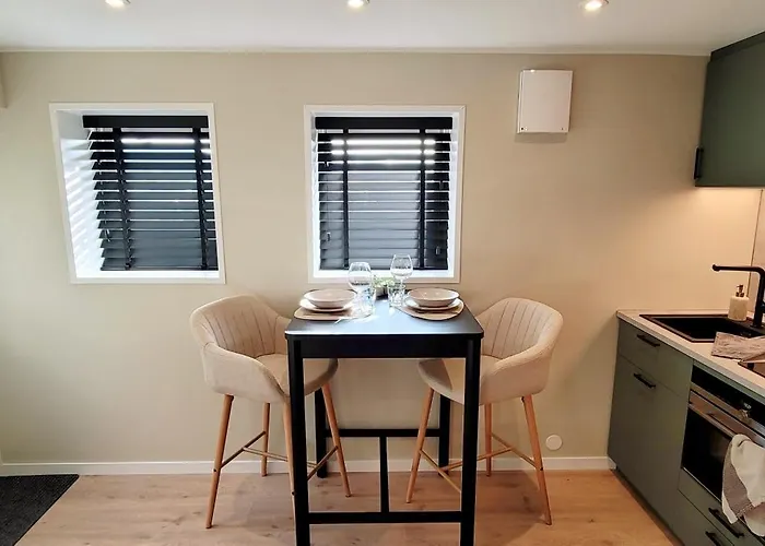 - ❓Czy w apartamencie Morgensolen znajduje się kuchnia do użytku gości?Tak, apartament Morgensolen wyposażony jest w pełnowymiarową kuchnię i oferuje czajnik elektryczny, lodówkę i piekarnik.
